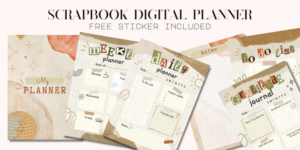 - Personalized Memory Keeping: With its unique scrapbook layout, this digital planner allows you to creatively document your life's highlights, from mundane moments to monumental milestones. Each page is a blank canvas awaiting your personal touch.